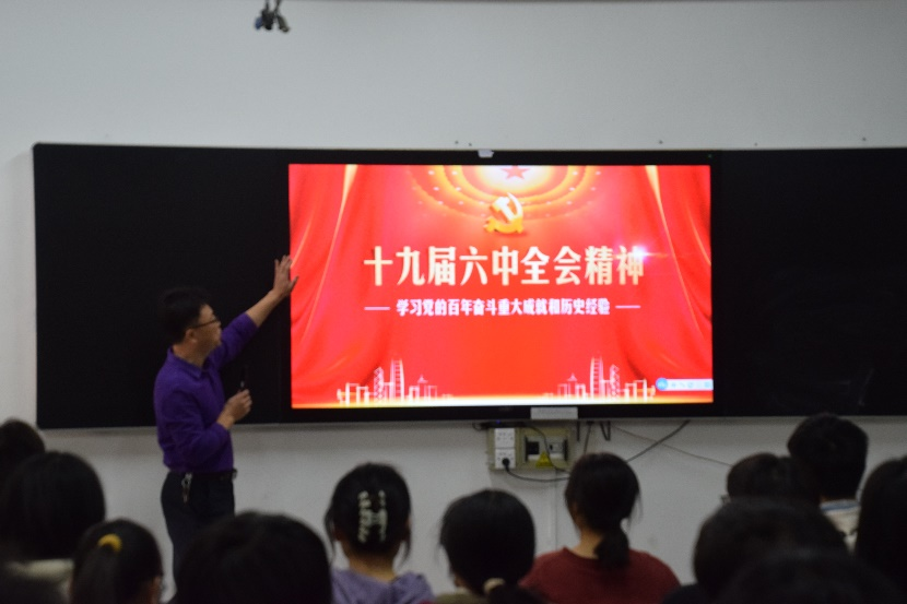 为深入学习党的十九届六中全会精神,增强员工的民族自信心和自豪感,12月6日,太阳集团tyc33455分党校在莞城校区机电楼312教室举行第12期入党积极分子培训班第四讲。此次党课由学院经理陈伟主讲,第12期全体入党积极分子参加。