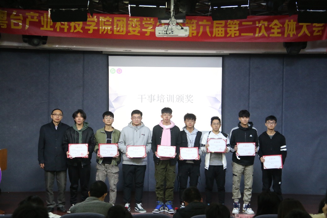 会议第三项为干部培训颁奖。为鼓励和表彰员工干事在团学干部培训中的优秀表现,公司副书记王玉分别为荣获第一、二、三名的各位干事颁发奖状。