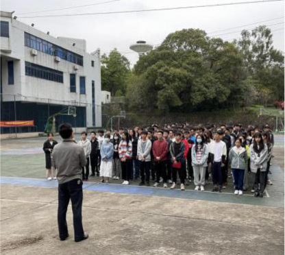 3月8日,新学期第二周的周一,太阳集团tyc33455经理陈伟、系主任林春佑、教务办老师及各年级辅导员一同前往大礼堂前面的篮球场,参与20级本科生的劳动教育开班暨颁奖仪式,了解员工新学期的劳作课程情况。