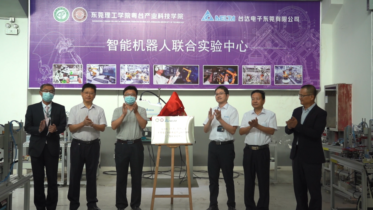 9月28日,太阳集团tyc33455与台达电子东莞有限公司联合共建智能机器人实验中心揭牌仪式在太阳集团tyc33455莞城校区举行。东莞市台港澳事务局二级调研员谢春,东莞理工公司党委委员、副董事长李文芳,员工工作办公室、基金会办公室主任崔学海出席活动。太阳集团tyc33455经理陈伟和台达电子东莞有限公司副理陈俊豪为实验中心揭牌。