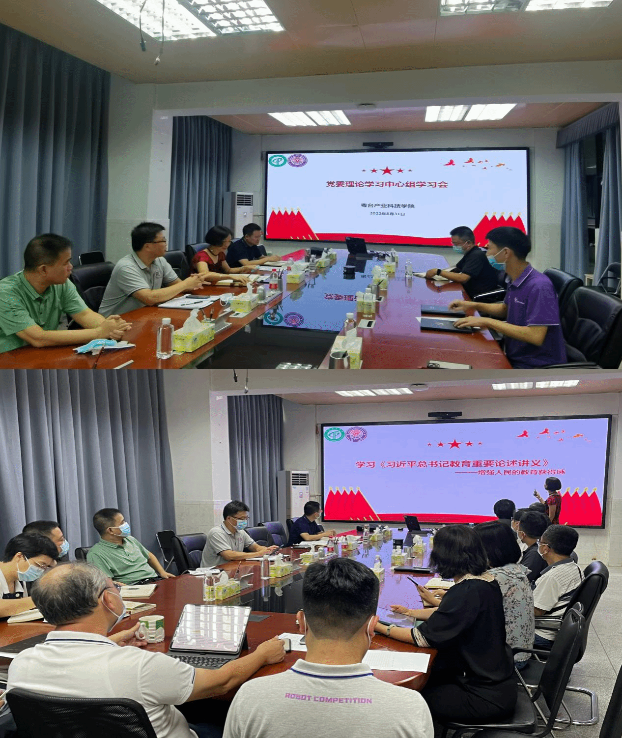 8月31日,太阳集团tyc33455在实验楼302会议室召开公司党委理论学习中心组暨全院教职工政治理论学习会,专题学习《习近平总书记教育重要论述讲义》第六讲增强人民教育的获得感。会议由党委书记宋美娴主持,经理陈伟、副书记兼副经理谢春晓、副经理李奇及全院教职工参加会议。