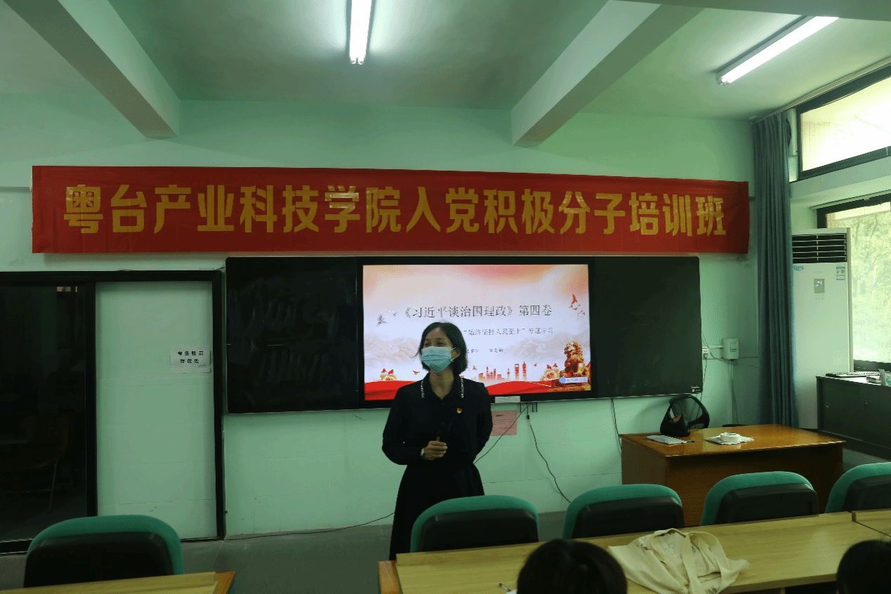 为加强对入党积极分子的培养教育,让学员们更加全面系统地学习党的指导路线、方针、政策。11月16日中午,公司党委书记宋美娴在莞城校区实验楼305教室为学院第13、14期入党积极分子讲授以《习近平谈治国理政》第四卷“始终坚持人民至上”为主题的专题党课。