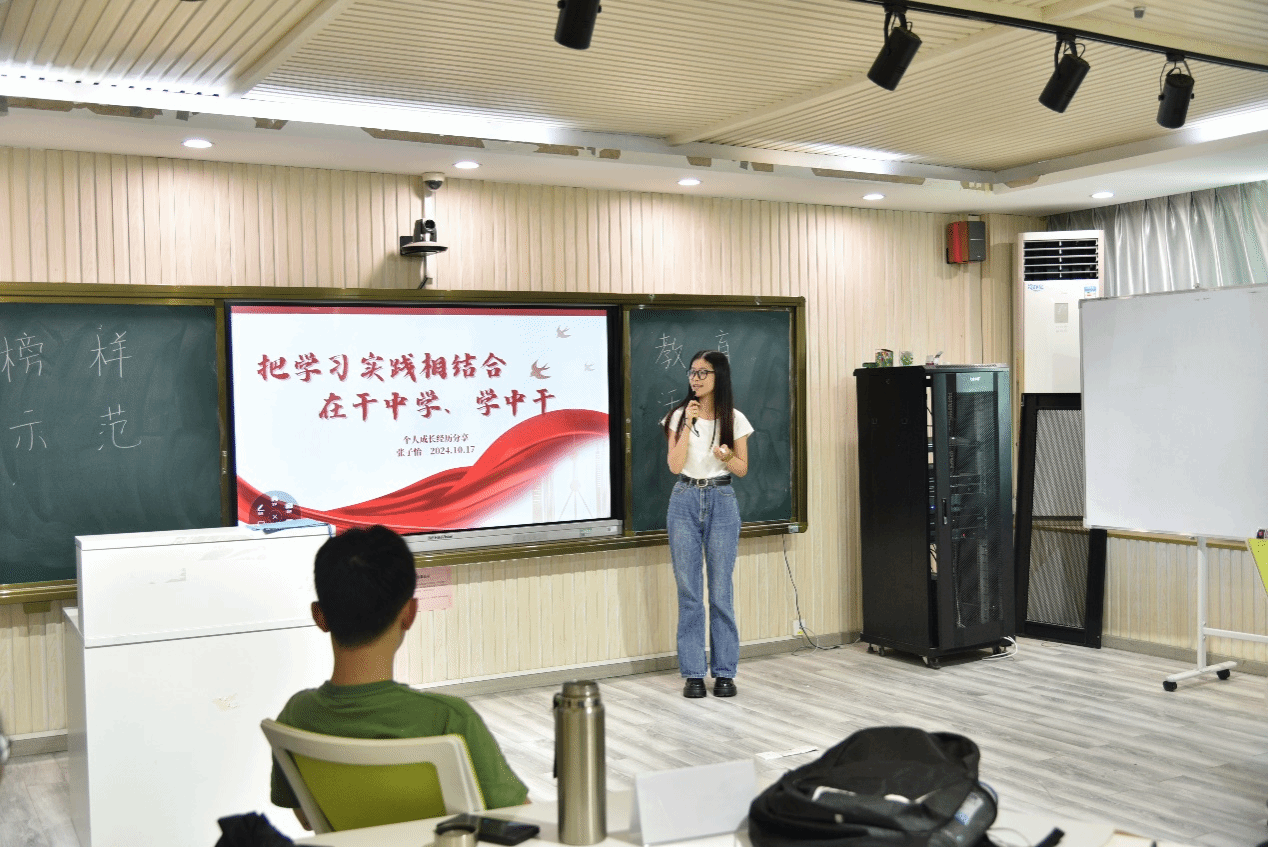 公司邀请了三位优秀员工党员依次进行分享交流。其中,正式党员张子怡以“学习与实践相结合,在干中学、学中干”为主题,结合自身在员工工作、志愿活动和参加各项竞赛等方面的成长经历进行分享。她鼓励大家要多向身边优秀的同学学习,做到经常自我反思,善于总结,结合瞬息万变的各种情况不断提升自我,做到知行合一。预备党员沈佳明以入党动机为切入点,提出要坚持学习,努力做终身学习型人才,同时,鼓励大家要加强理论修养,主动投身社会实践,争取在思想上和行动上共同入党。预备党员陈雅文,结合自身实际,畅谈自己在理论知识学习与参加各项实践活动期间的体会与感悟。她鼓励同学们要开拓思维,用于创新,为实现中华民族伟大复兴的中国梦奉献自己一份青春力量。