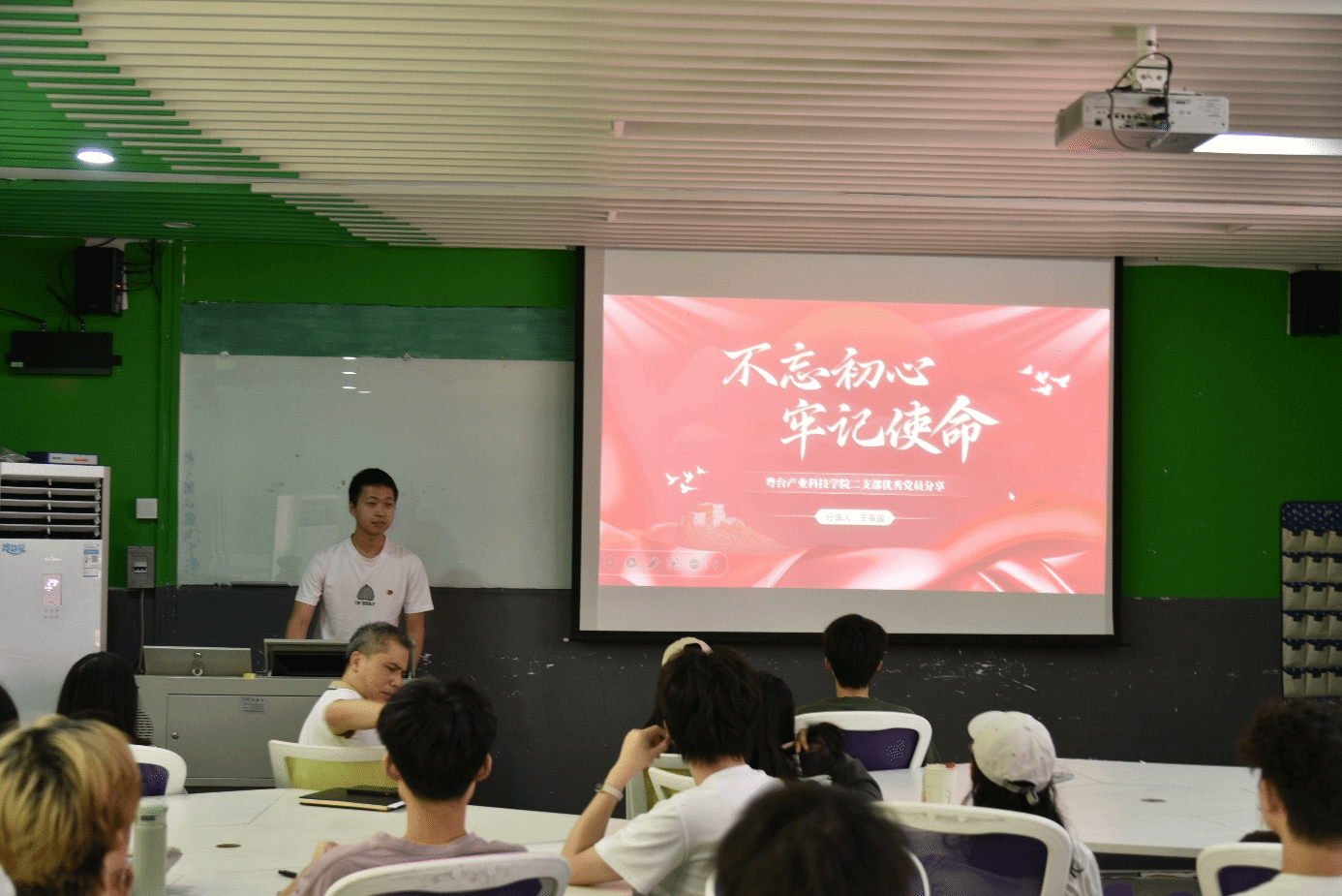 党员王秉国结合自身在员工工作、志愿服务、实习历练及项目参与中的经验收获展开一一分享。他鼓励同学们“知不足而奋进,望远山而前行”。要坚定信念凝聚奋斗力量,为共同的信仰不懈奋斗。