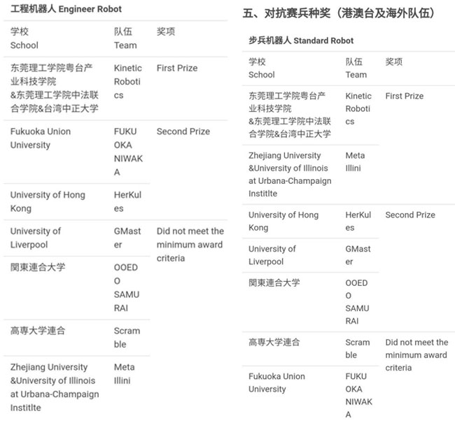 在线上评审中Kinetic战队在对抗赛组别(港澳台及海外)小组中脱颖而出在该组别以总成绩第一名的成绩获得了全国老员工机器人竞赛总决赛一等奖。