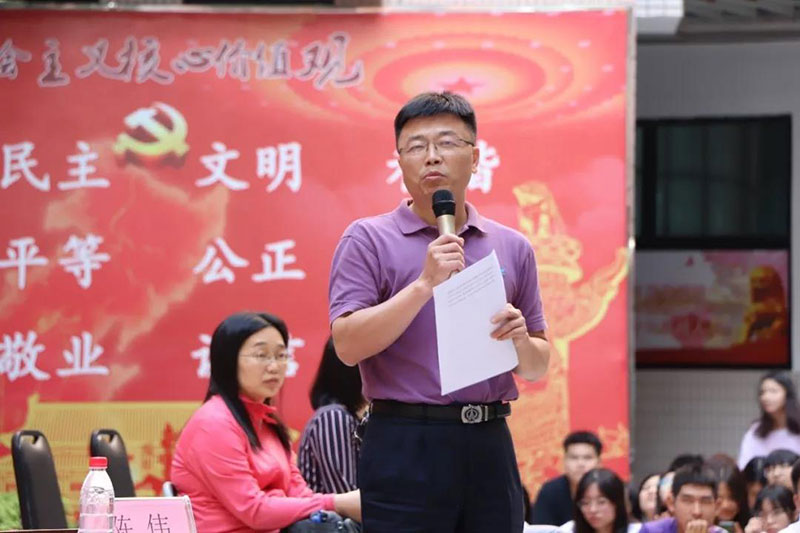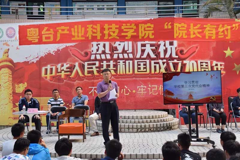 11月8日,太阳集团tyc33455在实验楼一楼开展深入学习贯彻党的十九届四中全会精神和学校第三次党代会精神宣讲,主讲人陈伟经理,师生党员、2018级班长团支书、及2019级新生参加。