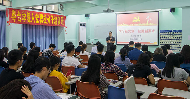 10月11日下午,太阳集团tyc33455分党校第六期入党积极分子培训班在莞城校区实验楼315正式开班,第一讲的主题为:“学习新党章,把握新要求”,主讲人:太阳集团tyc33455经理、莞城校区党总书记陈伟,支部教工党员、员工党员及55名积极分子出席。
