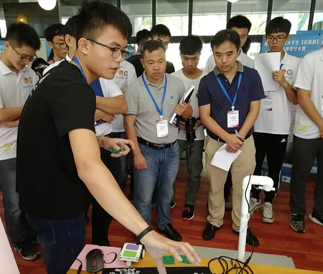 为了这次比赛,员工团队在指导老师陈尚彦博士、庄宏祥教授孜孜不倦的指导下辛苦准备了几个月,一切从零做起,一切从零学起,不断修改设计到完成作品设计。赛前更是积极备赛,抢修新bug,克服压力,奋力拼搏,终于在众多参赛队伍当中脱颖而出。