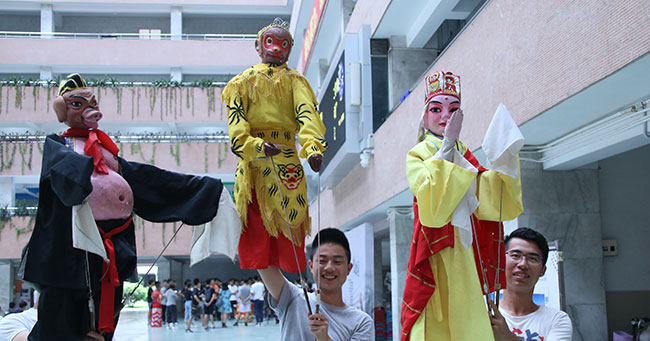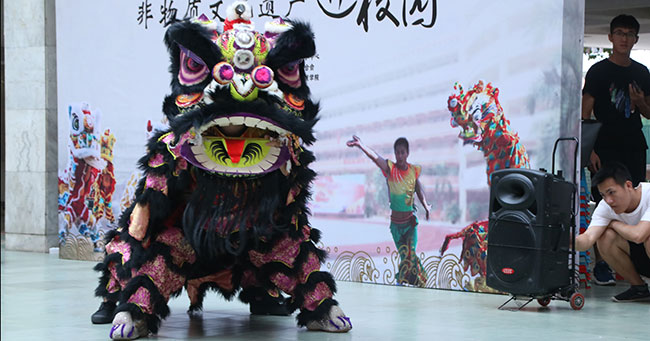 活动中,传承人们训练有素,表演得心应手,歌声婉转悠扬,木偶表情生动细致,醒狮表演惟妙惟肖,激起了同学们阵阵掌声,同学们也积极参与,切身体验传统文化的魅力。