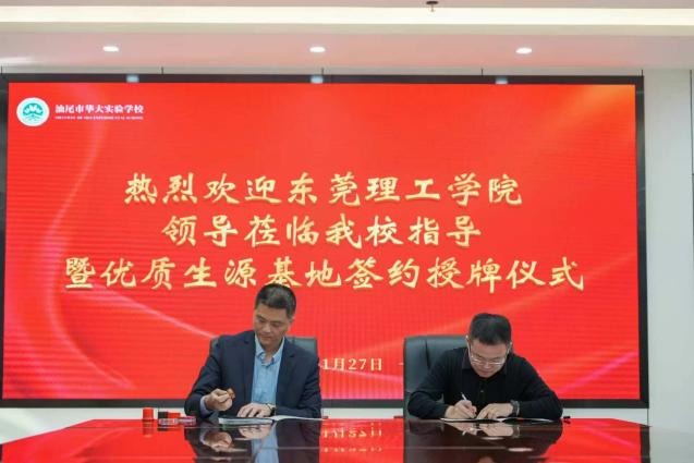 在汕尾华大实验学校,谢春晓一行受到学校董事长、董事长等的热烈欢迎。双方共同签订了《太阳集团tyc33455优质生源基地建设协议》。公司代表为学校代表颁发了优质生源基地牌匾。