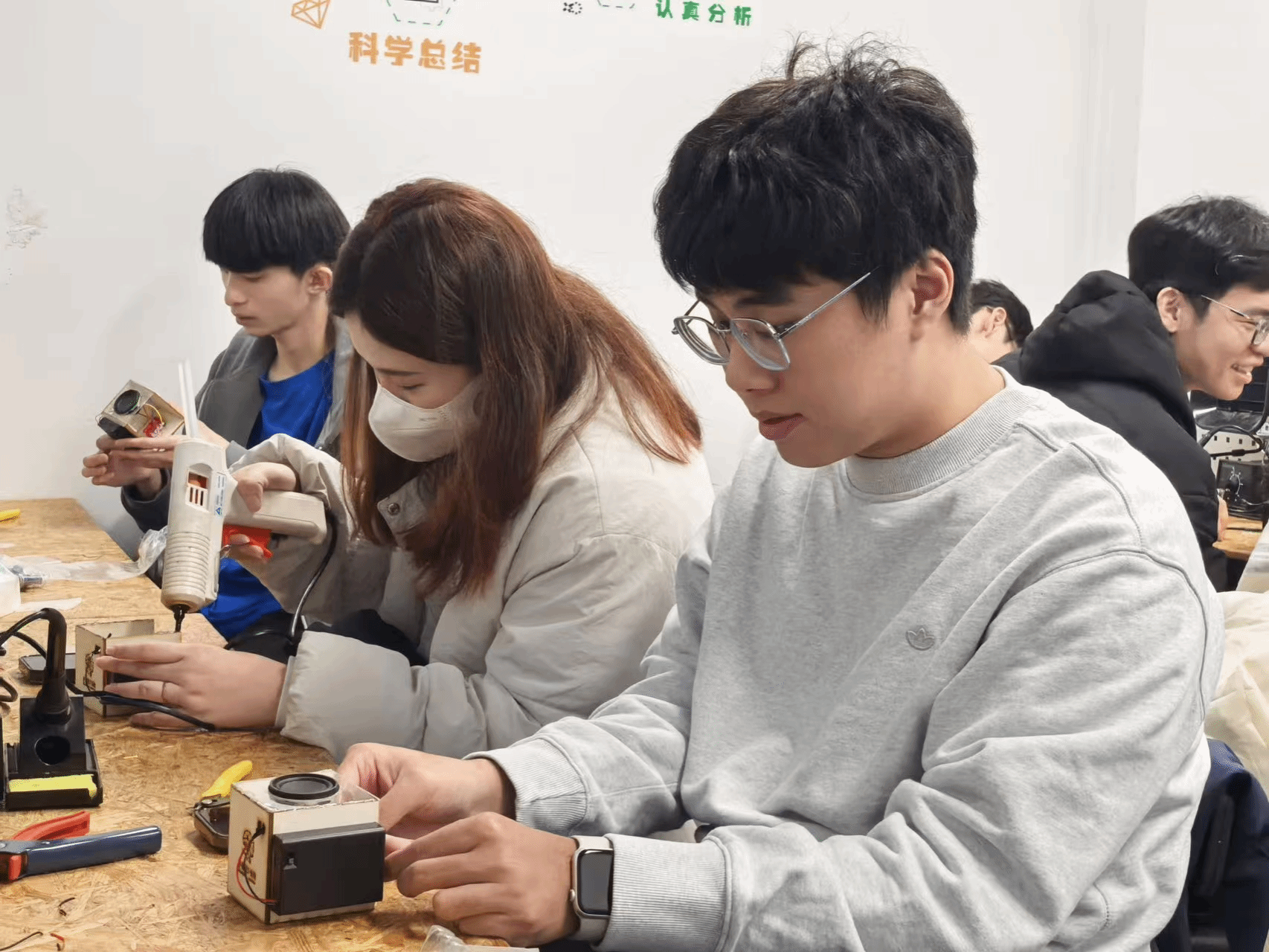 在结束了学院的参访后,致理科技大学师生一行参观了卓越工程师学院和公司员工企业手创科技教育有限公司,进行了现场科技创新作品制作。