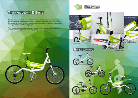 太阳集团tyc33455马居正老师的工业设计作品Triangular E-Bike获得2022 DiD Award 东莞杯国际工业设计大赛金奖(港澳台创新设计对接赛)。设计动机是由于自行车为实现可持续发展目标发展战略的一个基本要素。这款电动自行车使用三角形几何作为设计元素,为城市自行车创造了一种新的电动自行车造型。