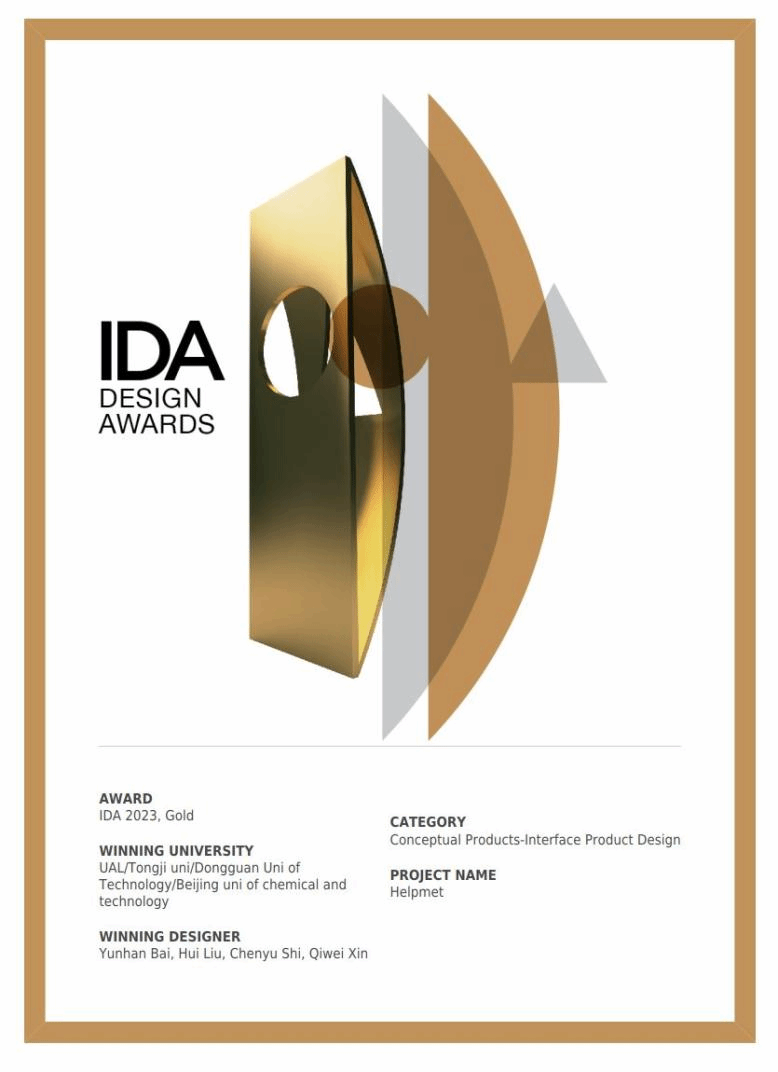 近日,2023美国IDA(International Design Awards)国际设计大奖正式公布。21级工业设计系刘辉同学和外校同学一起做的团队项目从来自全球多个国家的参赛作品中脱颖而出,荣获年度概念产品设计类金奖
