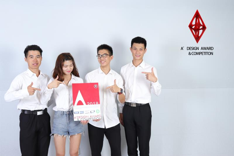 在学院“两岸融合办学,项目化引领科技创新教育”的人才培养模式下,蒋思晋以卓越的领导力和创造力脱颖而出。他不仅在国际舞台大放异彩,更通过实战项目展现了产学融合的深度价值。2018年,作为项目负责人,蒋思晋带领团队设计的作品Air Touch——一款融合中国文人山水画美学的智能空气净化器,在被誉为“欧洲设计界奥斯卡”的意大利A’设计大奖赛(A’Design Award & Competition)中斩获最高奖项。Air Touch的灵感源于传统山水画的留白意境,创新性地将滤芯与水墨渐变结合:随着滤芯逐渐饱和,山水画面由淡转暗,诗意化地提醒用户更换耗材。这一设计不仅将东方美学推向国际,更展现了蒋思晋对功能与艺术的深度思考。赛后,他携团队亲赴意大利领奖,与全球顶尖设计师交流,为后续创业埋下伏笔。