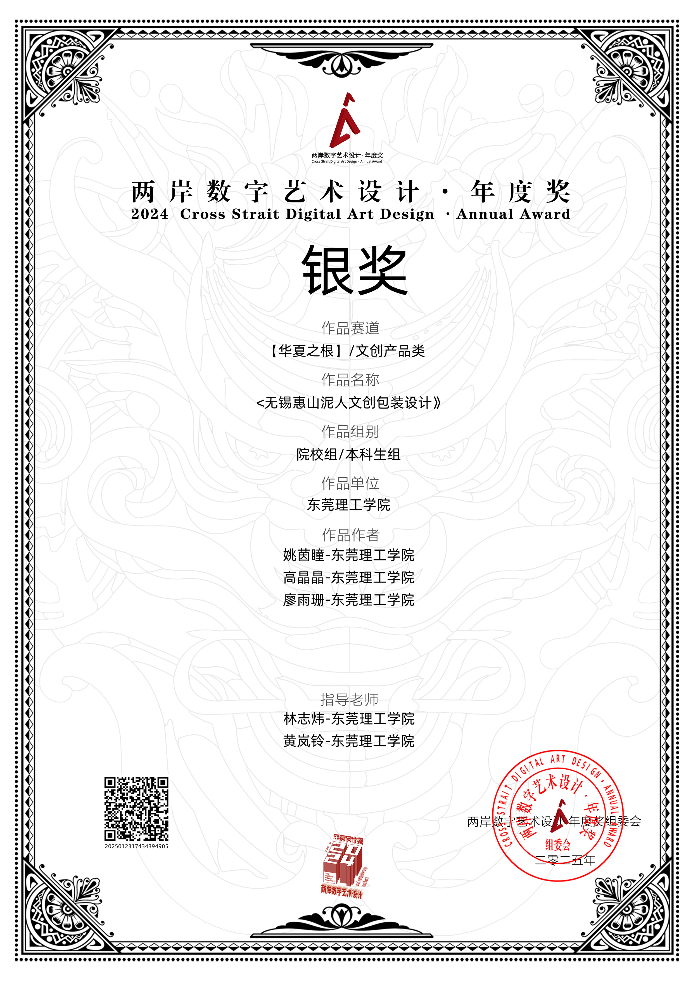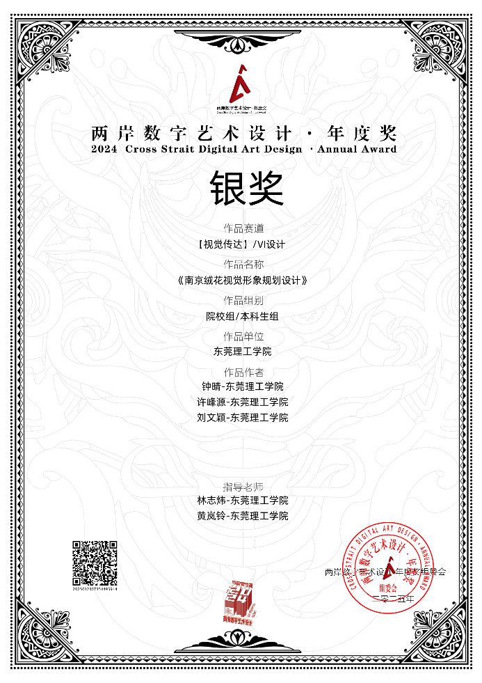 院林志炜老师、黄岚铃老师共同指导员工参加“2024年两岸数字艺术设计年度奖”,荣获银奖2项、铜奖1项、佳作奖1项,共4项奖!
