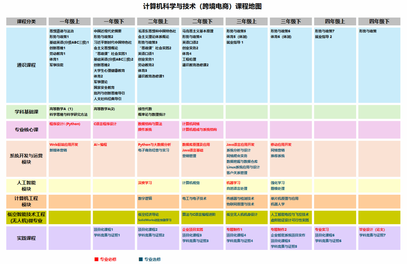 Java语言应用开发、数据结构与算法、计算机网络、数据库原理及应用、操作系统、计算机组成与系统结构、Python与大数据分析、机器学习、深度学习、电子商务经营与实习等多门课程。