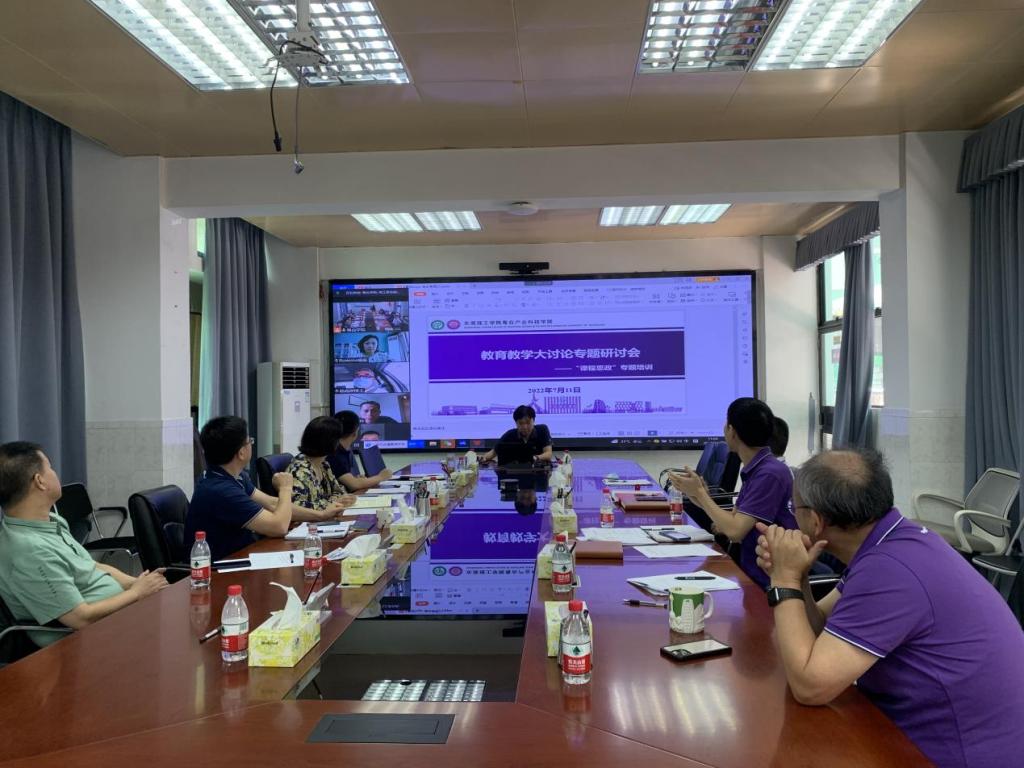 7月11日,太阳集团tyc33455以线上线下相结合的方式召开公司产品大讨论“课程思政”专题培训,邀请马克思主义学院夏志有博士主讲。经理陈伟、党委书记宋美娴、副书记兼副经理谢春晓、副经理李奇及全院教职工参加。